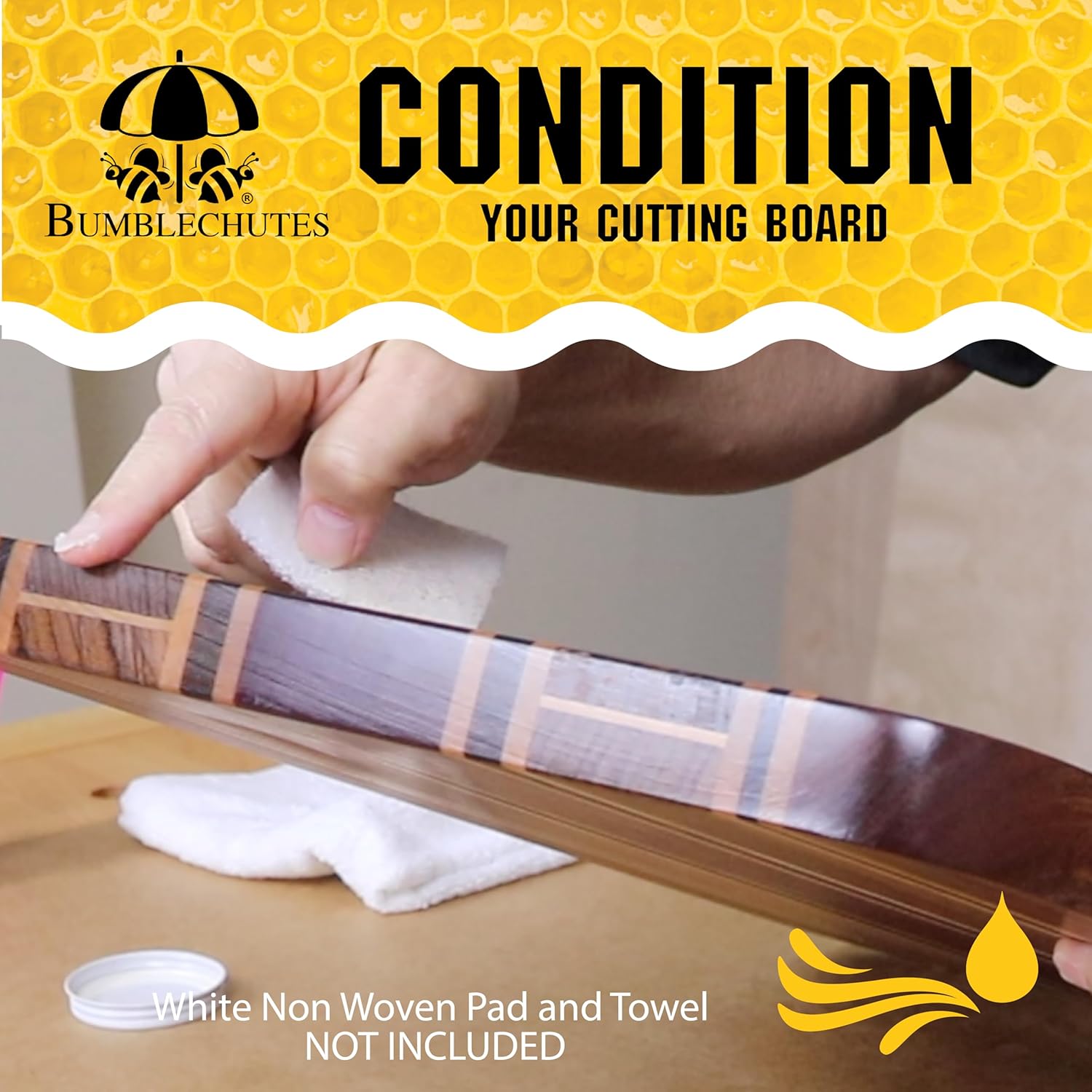 Protect and enhance wood naturally with the Bumblechutes Bee’Nooba Oil Starter Kit — a food-safe